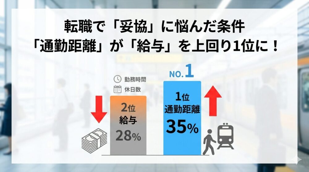 転職で「妥協」に悩んだ条件、給与を上回り「通勤距離」が1位に