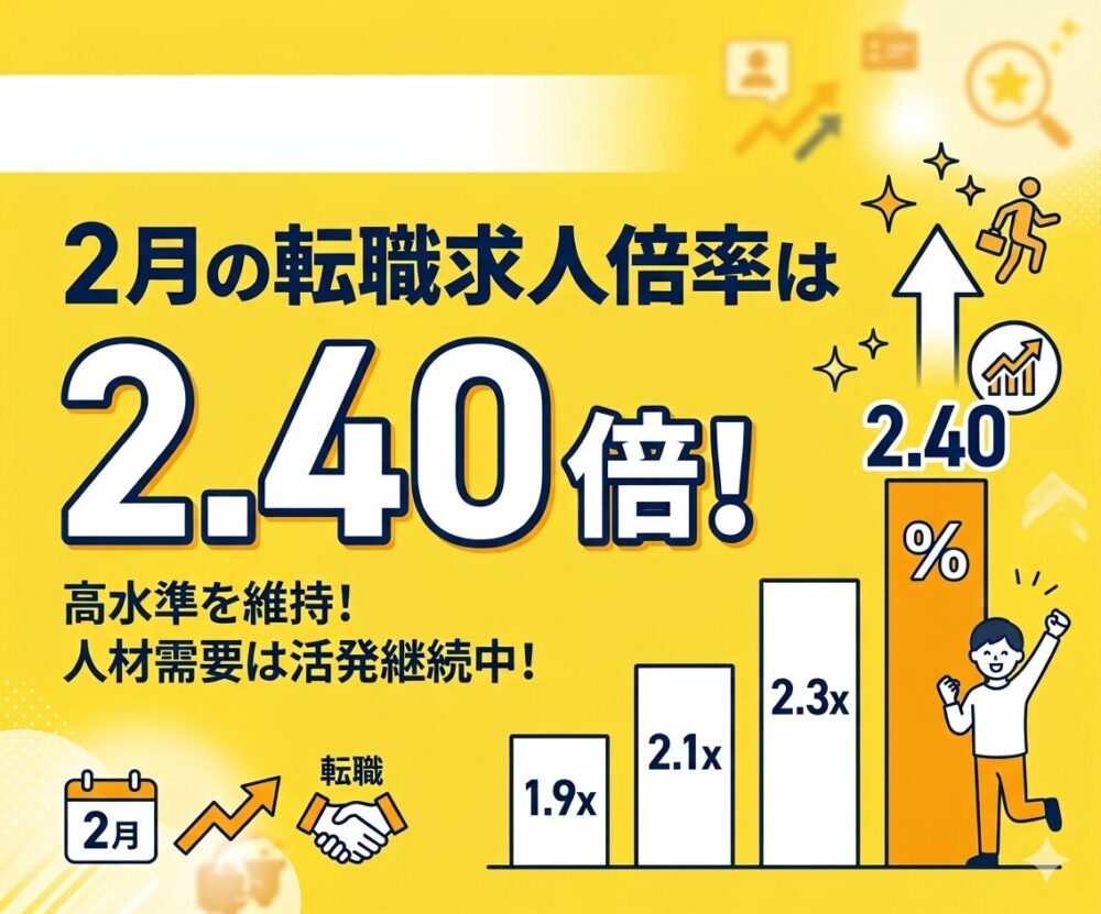 dodaが発表した2026年2月の転職求人倍率は「2.40倍」となりました。